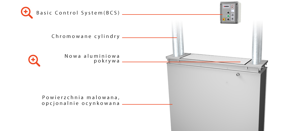 Podnośnik podprogowy zintegrowany w platformie głównej zatopiony w jezdni